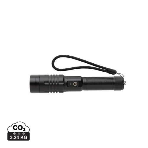 Functionality, performance and design all come together in this re-chargeable torch. The high quality aluminum alloy body fits perfectly in your hand. The premium focus light allows you to extend the light up to 2000 times. Because of its IP4 rating, it is weather proof so can easily be taken outside. The powerful bulb creates up to 1000 lumen and a beam that reaches up to 500 metres. The torch uses a re-chargable battery so no need to replace the batteries. Simply re-charge via your USB socket. The high quality bulb comes with 5 modes including SOS function. The 2000 mah battery allows a usage up to 4 hours on a single charge.