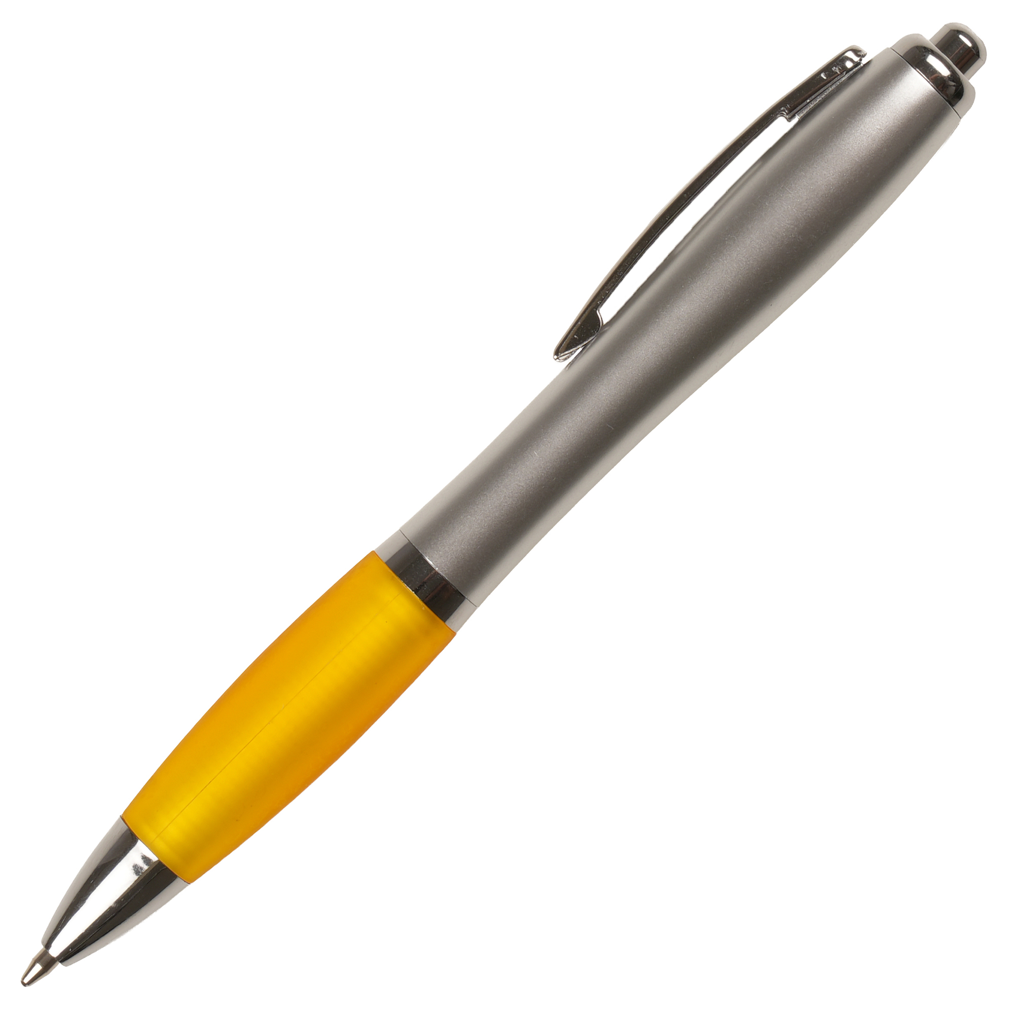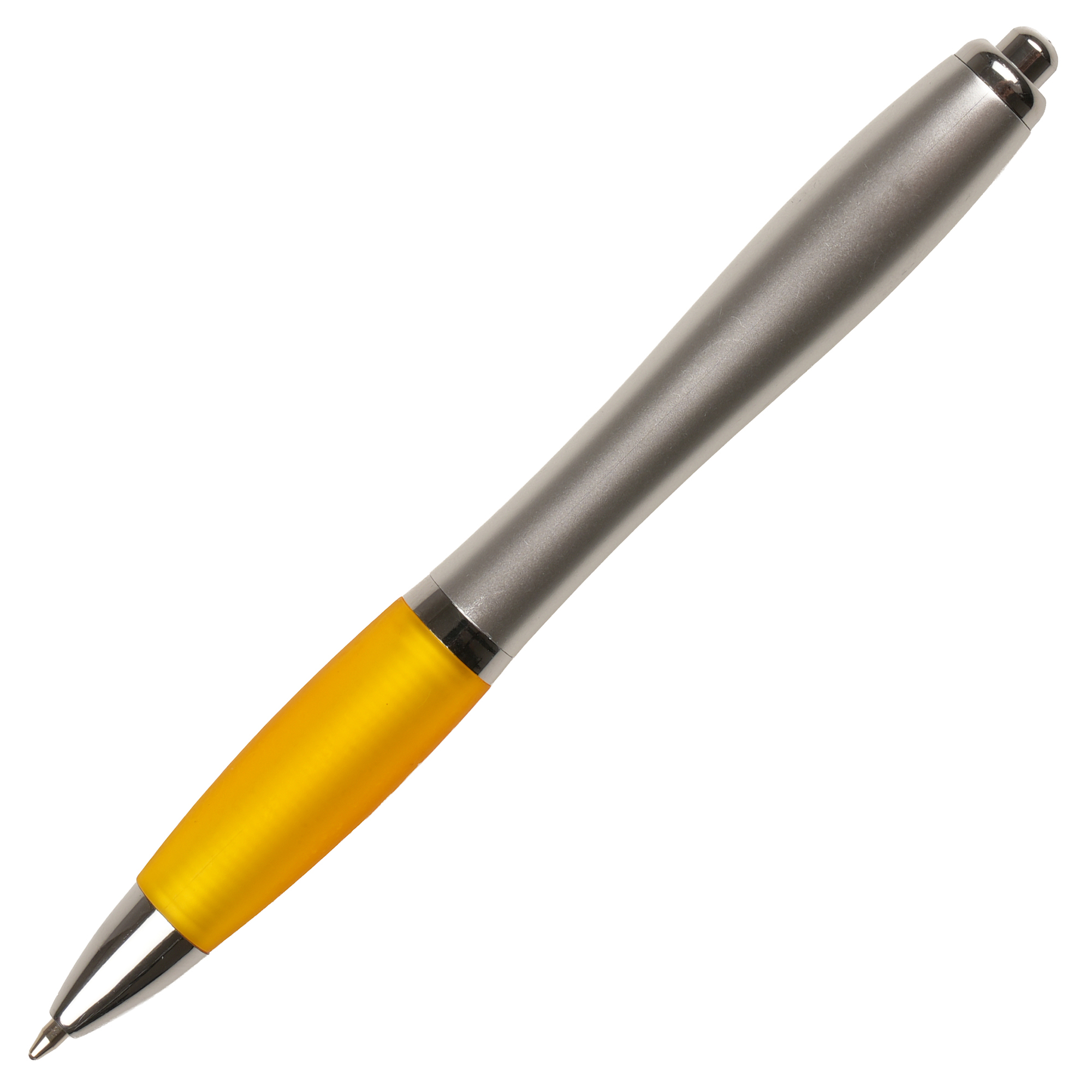 A curvy push action ball pen with a huge choice of grip colours.